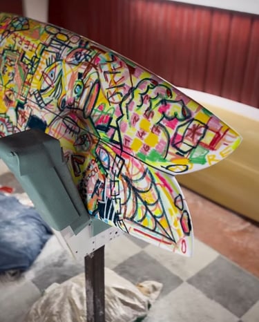 Inspirados pelo dinamismo das ondas, pelas texturas naturais da costa e pela cultura do surf, os seus murais irão refletir esta ligação visceral ao Atlântico e ao espírito livre dos Açores.