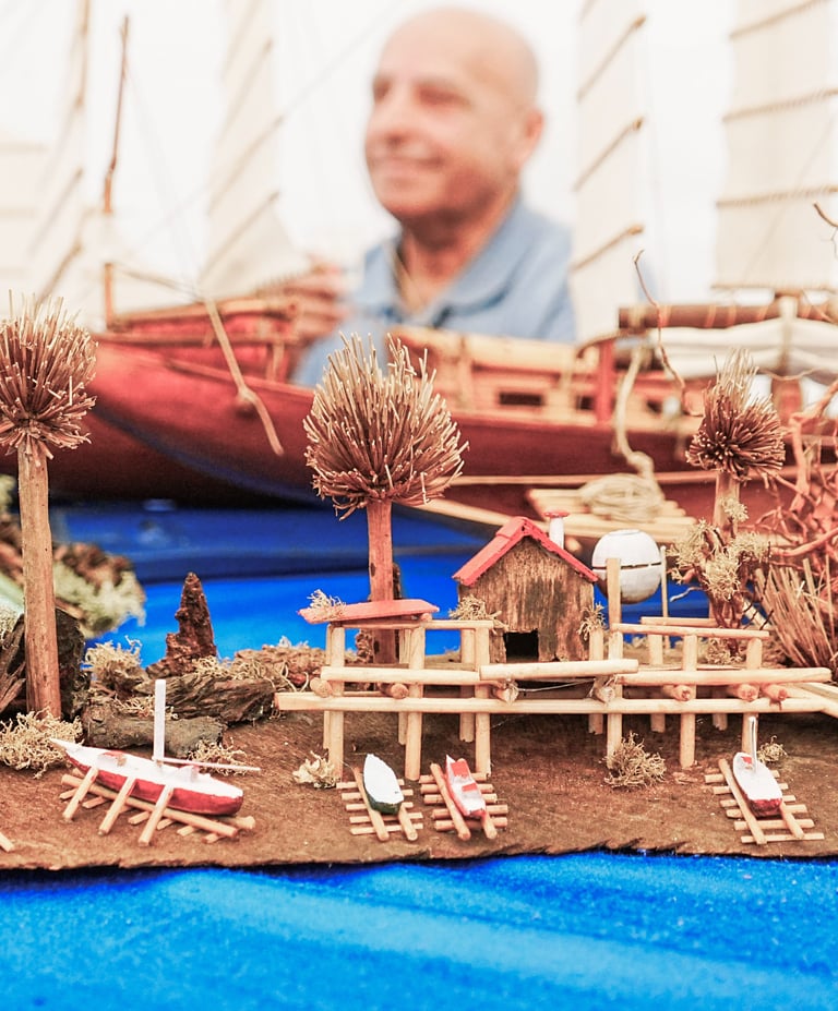 Artista versátil, trabalha como decorador cénico e de interiores, com uma abordagem sensível e discreta. A sua relação com o mar é central na sua identidade criativa, resumida no seu statement pessoal: